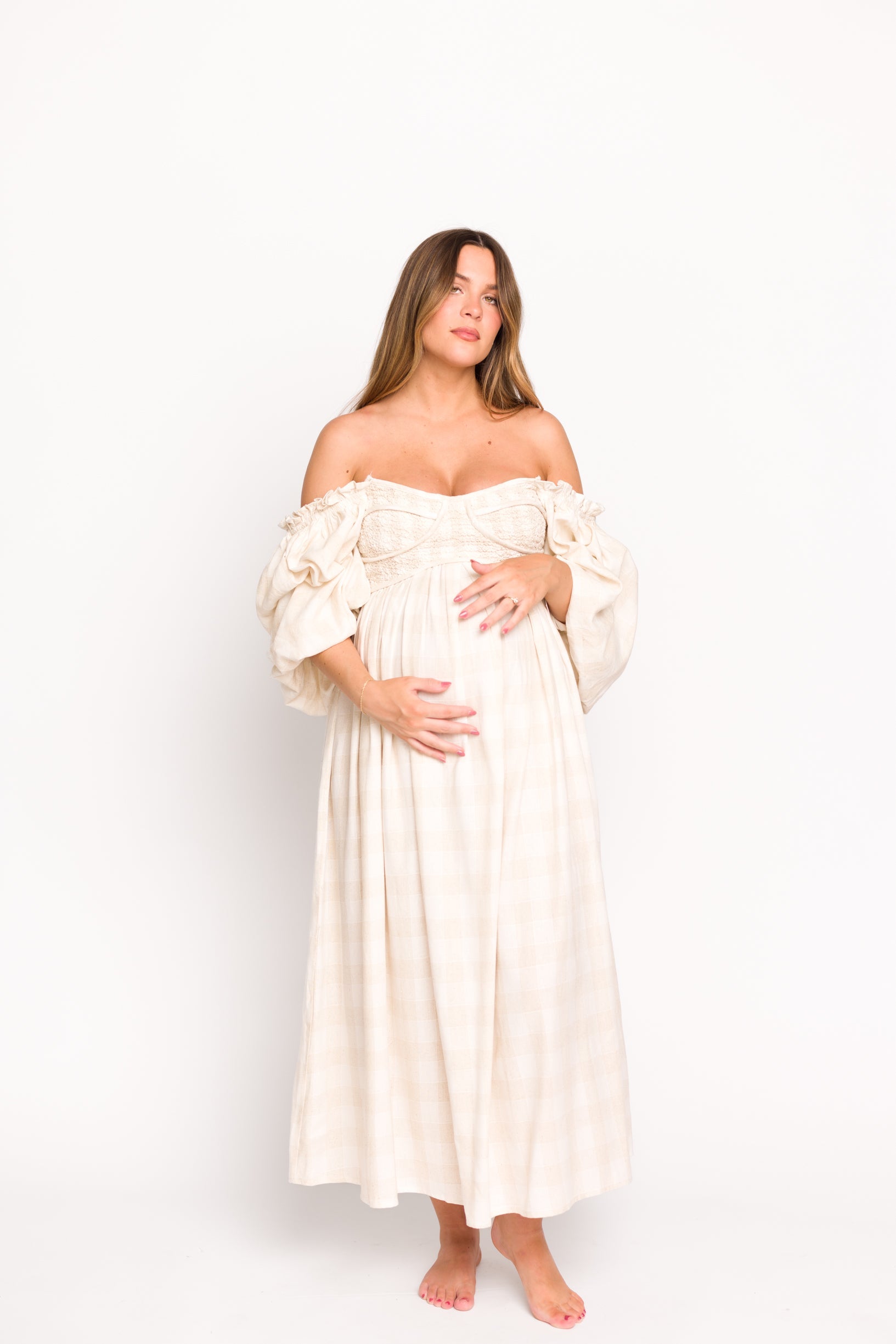 Harlow Maxi Dress in Natural Plaid - Bump Friendly