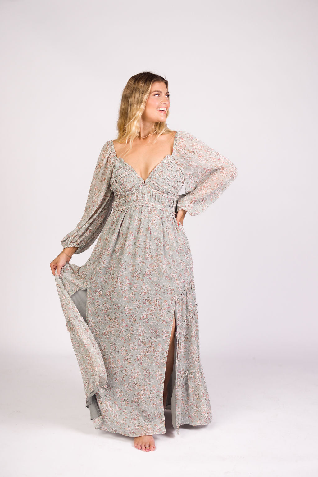 Daphne Long Sleeve Maxi Dress in Sage/Pink/Ivory Floral - Bump Friendly & Inclusive Sizing (XS-3XL)